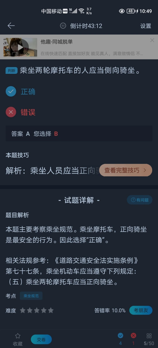 科目四好不好考